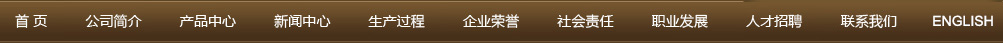 首 頁 | 公司簡(jiǎn)介 | 產(chǎn)品中心 | 新聞中心 | 生產(chǎn)過程 | 企業(yè)榮譽(yù) | 社會(huì)責(zé)任 | 職業(yè)發(fā)展 | 人才招聘 | 聯(lián)系我們 | English 【后臺(tái)管理】